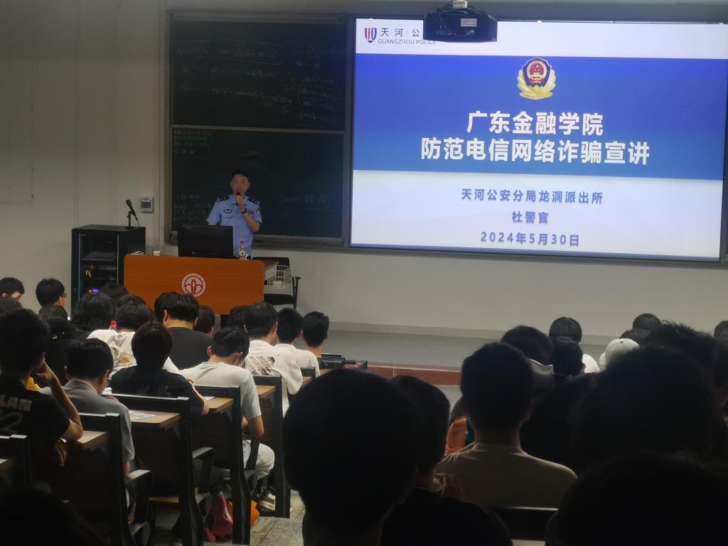 随着网络技术的飞速发展,诈骗手段层出不穷,校园安全面临着前所未有的挑战,为增强学生防范意识,提高学生自我保护能力。5月30日晚,Beat365中文官方网站联合天河公安分局龙洞派出所,在6栋教学楼401举办了“防范电信网络诈骗”宣讲会。