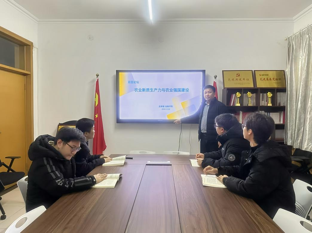 2024年12月20日上午10点,yl23411永利官网于三办党务会议室举办了“双百论坛”,并邀请yl23411永利官网孟维福老师做题为《农业新质生产力与农业强国建设》的主题讲座,多名青年教师和学生参加。