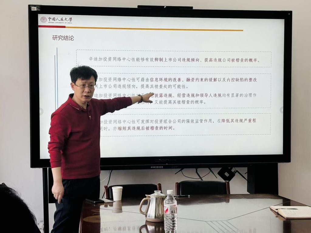 12月20日下午,永利官网举办第四十九期金融大讲堂,本期金融大讲堂由中国人民大学商学院财务金融系教授、博士生导师孟庆斌以《“辛迪加投资网络”能强化风险资本的监管作用吗?》为题进行主讲。院长杨雪美、副院长范庆祝以及学院青年教师参加。
